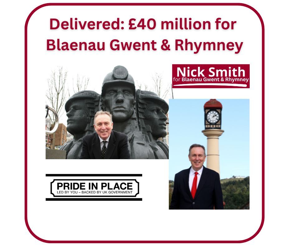 Nick Smith MP for Blaenau Gwent & Rhymney has welcomed the £40m plus “Pride in Place” funding from the UK Labour Government for his constituency.